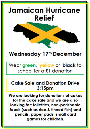 On Wednesday 17th December, we will be holding a fundraising event and we are inviting children to wear green, yellow or black to school for a £1 donation.